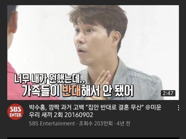 그래서 평소 며느리말을 잘듣던 박수홍의 엄마도 며느리편든다고 박수홍결혼 반대함.