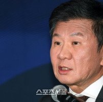 대한축구협회 정몽규 회장이 19일 서울 종로구 포니정재단빌딩에서 제 55대 대한축구협회장 선거 출마 기자회견을 하고 있다. 2024. 12. 19.박진업 기자 upandup@sportsseoul.com
