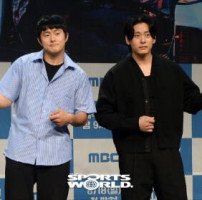 기안84(왼쪽)와 유태오가 16일 상암동 MBC 골든마우스홀에서 열린 예능프로그램 '태어난김에 음악일주' 제작발표회에 참석하고 있다. 김용학 기자 yhkim@sportsworldi.com 2024.08.16.