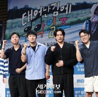 김지우 PD와 기안84, 배우 유태오, 권락희 PD(사진 왼쪽부터)가 16일 오후 서울 마포구 상암 MBC에서 열린 MBC 새 예능 '태어난 김에 음악일주'의 제작발표회에 참석해 포즈를 취하고 있다. '태어난 김에 음악일주'는 기안84가 버킷리스트 중 하나였던 가수의 꿈을 향해 나아가는 여정을 담은 프로그램이다. 한윤종 …
