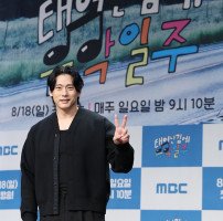 배우 유태오가 16일 오후 서울 마포구 MBC신사옥 골든마우스홀에서 열린 MBC 예능프로그램 '태어난 김에 음악일주' 제작발표회에 참석해 포즈를 취하고 있다. '태어난 김에 음악일주'는 기안84가 버킷리스트 중 하나였던 가수의 꿈을 향해 나아가는 여정을 담은 프로그램이다. 한윤종 기자 hyj0709@segye.com