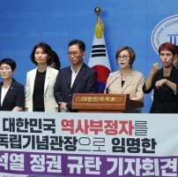 정의기억연대, 14일 논평에서 “굴욕 외교의 끝을 보여주고 있다” 이나영 정의기억연대 이사장(왼쪽에서 다섯 번째)이 지난 13일 오전 서울 여의도 국회 소통관에서 열린 ‘대한민국 역사부정자를 독립기념관장으로 임명한 윤석열 정권 규탄 기자회견’에서 발언하고 있다. 뉴시스 정의기억연대(정의연)는 14일 “윤석열 대통령 취임 …