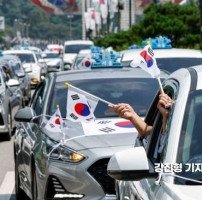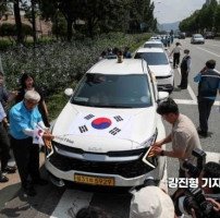 [포토] 광복절 앞두고 태극기 택시 카퍼레이드