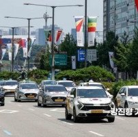 [포토] 올림픽로 달리는 태극기 택시