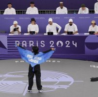 9일(현지시간) 프랑스 파리 콩코르드 광장에서 열린 브레이킹 비걸 첫 경기에서 난민팀의 아프가니스탄 출신 선수 마니자 탈라시가 ‘아프가니스탄 여성들에게 자유를’이라고 쓰인 천을 펼쳐 보이고 있다. AP 뉴시스 2024 파리 올림픽 브레이킹 비걸 종목에 출전한 아프가니스탄 출신 난민 대표 마니자 탈라시가 정치적 의사 표현을…